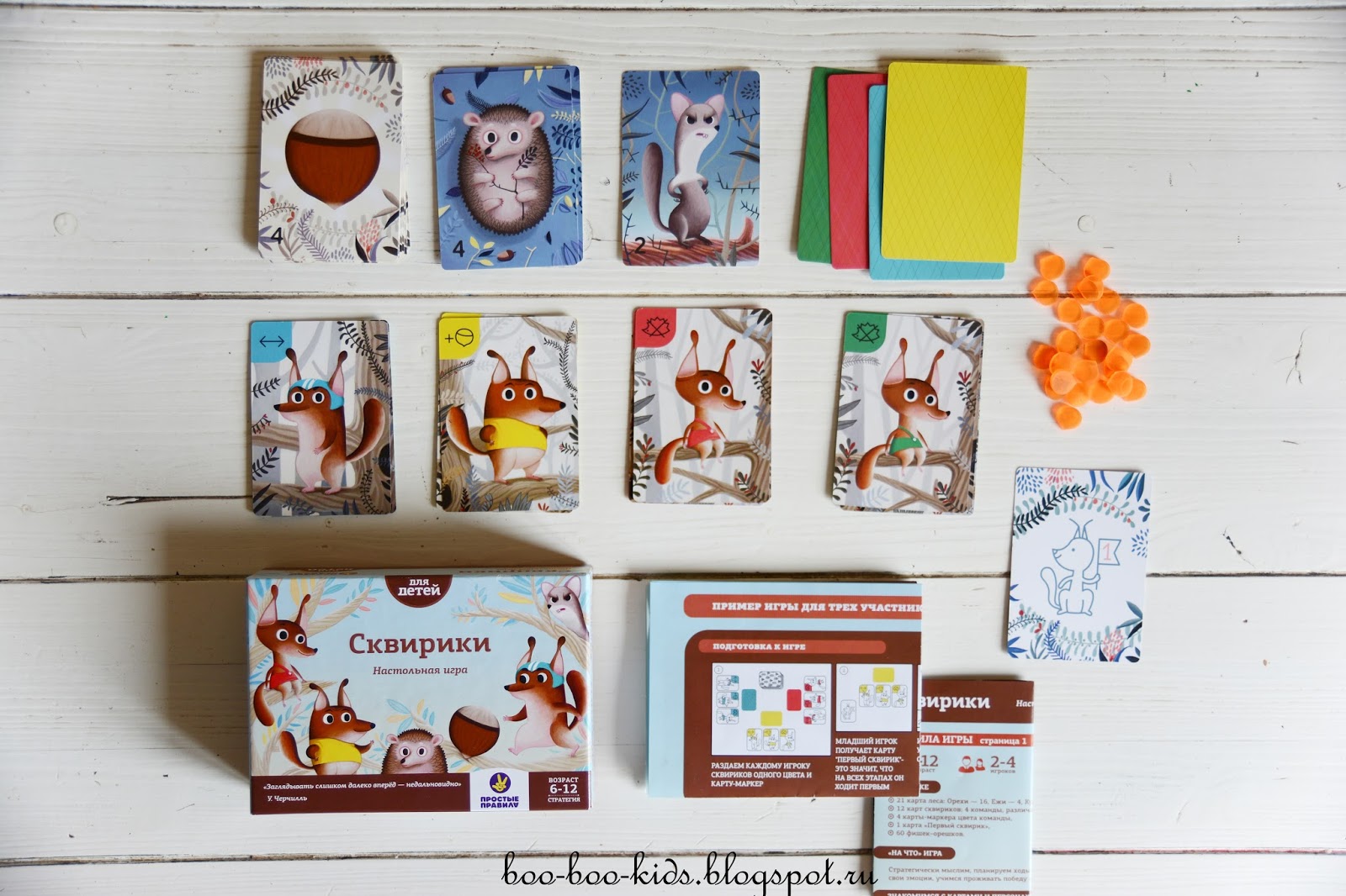 Игра состоит из нескольких раундов, в каждом из которых по 3 этапа - разведка, вылазка в лес и сбор орехов. Собственно, их добыча - и есть основная игровая задача. А активно мешают этому вредные ёжики и куница. Но и на них есть управа - к примеру, сквирик Шустрик может запросто стащить орех и у ежа, а Первый сквирик прогонит из рощи куницу.